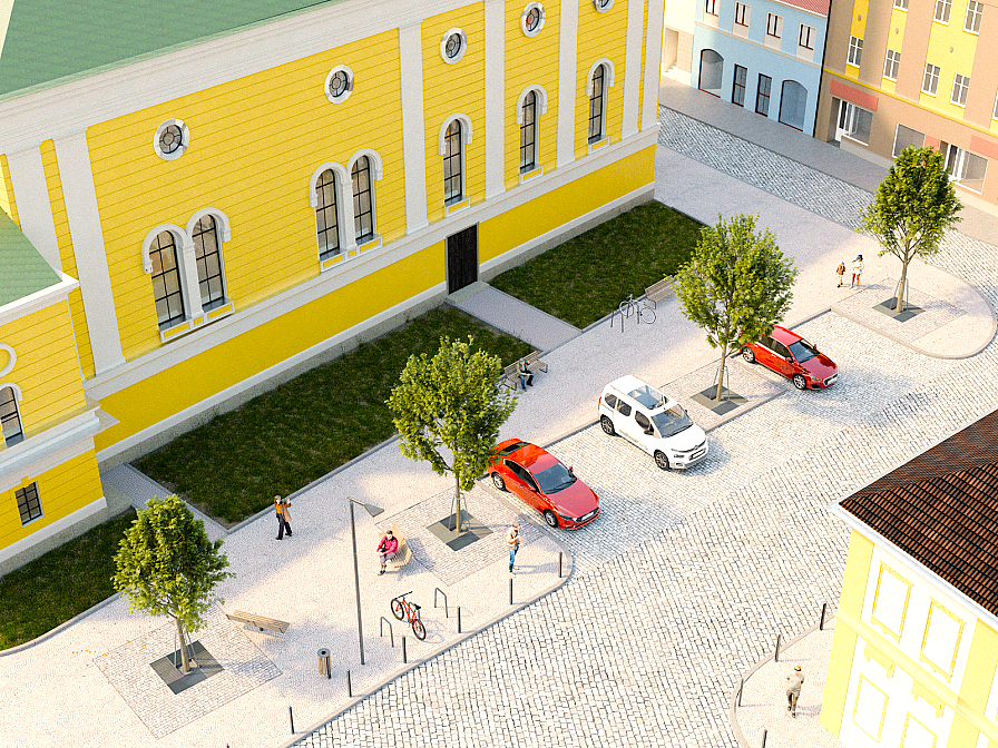 V uplynulých měsících město vyhodnocovalo dočasnou úpravu prostoru před kostelem Nanebevzetí Panny Marie. Posouzení vycházelo z několika podkladů – sledovala se bezpečnost, fungování dopravy, kvalita veřejného prostoru i názory veřejnosti. Dočasné řešení bylo od počátku pojato jako zkušební projekt, který v reálném provozu ověřil navržené změny a poskytl cenná data o tom, co se osvědčilo a co je třeba upravit. Na základě těchto podkladů nyní rada města rozhodla o zahájení přípravy návrhu trvalé úpravy, a to ve variantě s kolmým parkovacím stáním (viz vizualizace).„Dočasné opatření bylo od počátku koncipováno jako ověřovací provoz, jehož cílem bylo získat zkušenosti z reálného fungování prostoru. Chtěl bych připomenout, že stávající podoba úpravy, včetně žluté grafiky nebyla návrhem finálního stavu a v trvalé podobě se s ní nepočítá. Budoucí úprava bude vycházet z architektonického a technického návrhu odpovídajícího významu místa v historickém centru města,“ uvádí místostarosta Václav Urban.