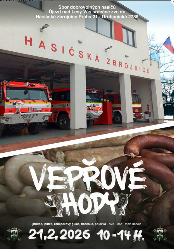 Sbor dobrovolných hasičů Újezd nad Lesy srdečně zve všechny občany k hasičské zbrojnici v Praze 21, Druhanická 2788, na tradiční vepřové hody.