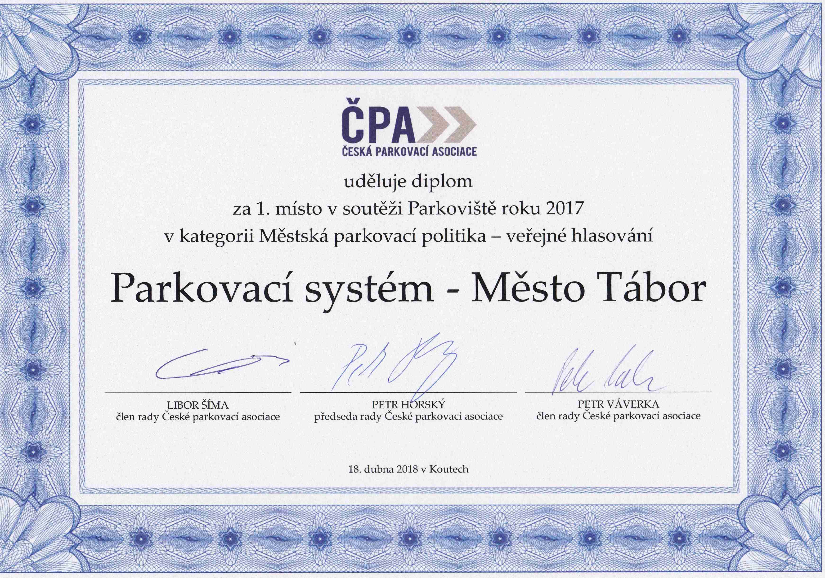 Od 1. května 2018 poskytuje společnost Technické služby Tábor s.r.o., v rámci ceníku provozu parkování, ekologickou slevu pro nepřenosné parkovací karty. Jde o vozidla s pohonem CNG, Plug-in Hybrid (PHEV), Hybrid (FHEV) a elektromobily, které mají nárok na slevu ve výši 30 % z příslušné ceny.Cílem podpory alternativních zdrojů paliva je snížení negativních vlivů dopravy na zdraví obyvatel a životního prostředí, tj. zejména snížení emisí z dopravy a případné snížení hlukové zátěže, a to prostřednictvím podpory využívání vozidel s alternativním pohonem. Městská parkovací politika v Táboře zaznamenala za rok 2017 opět úspěch v rámci soutěže České parkovací asociace – Parkoviště roku. U odborné poroty získal Tábor 2. místo, ale u hlasování veřejnosti Tábor zvítězil a obhájil tak prvenství z roku 2016.[...]