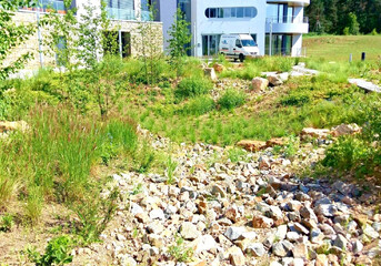 Průleh s kameny a vodou, která v něm zůstává i několik hodin po deštích...